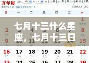 对于许多追求星座运势的人来说,特定的日期往往蕴含着特殊的星座能量,七月十三日,这一天出生的人属于哪一个星座呢?他们的运势如何呢?本文将为您详细解析七月十三日的星座特性及运势,带您了解这一天的星象奥秘。